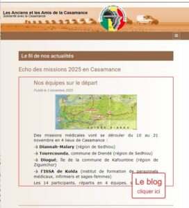 A consulter en ligne sur le site, le blog des missions de novembre sera alimenté par Anne-Claude avec les nouvelles que nos équipes vont lui envoyer.